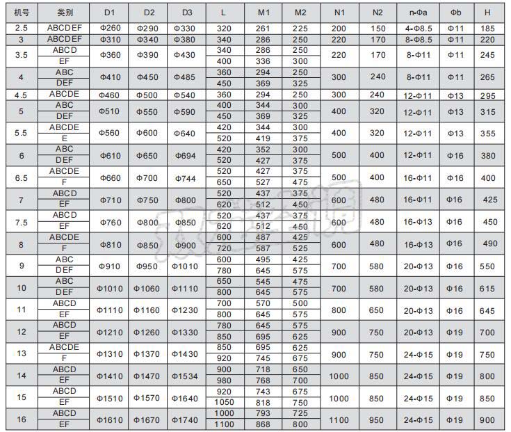 SZF型軸流風(fēng)機(jī)外形及安裝尺寸(A、B、C、D、E、F型)